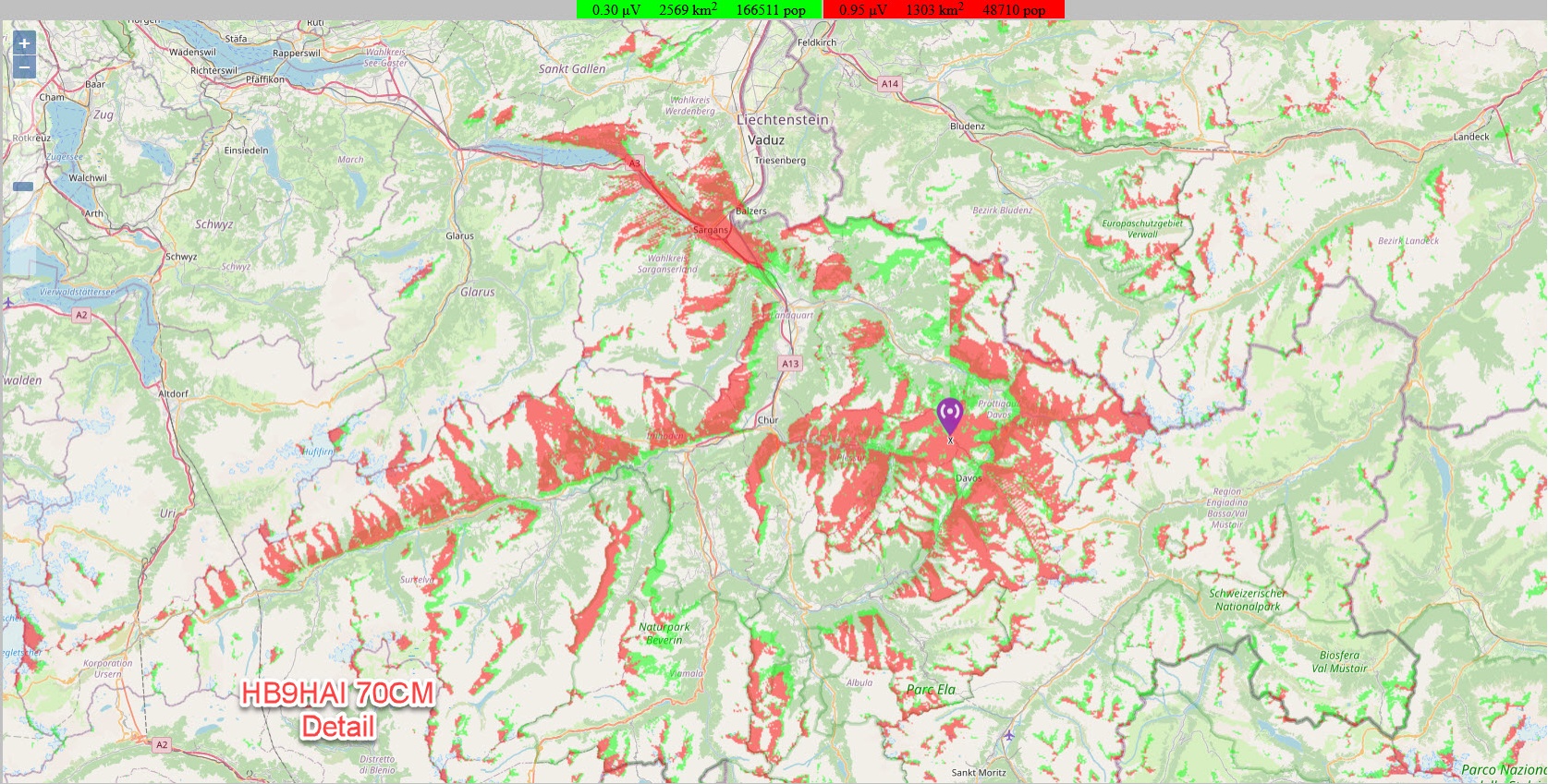 Funkausbreitung HB9HAI UHF Detail (anklicken)